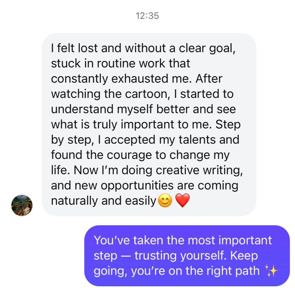 Hier findest du echte, aufrichtige Worte von Schülerinnen, die bereits mit mir, Arthur, kommuniziert haben – Nachrichten gelesen, Fragen im Bot gestellt, „Geheimnisse der Liebe“ angeschaut – und gespürt haben, wie ihr Herz leise reagiert und sich öffnet.
